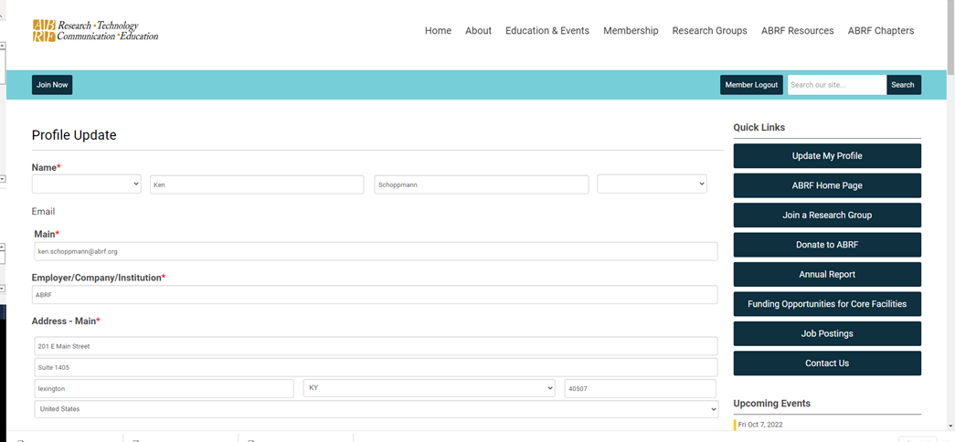 ABRF members can customize their online profiles to specify their technology interests, areas of expertise, roles within their Core facility, and demographic information.